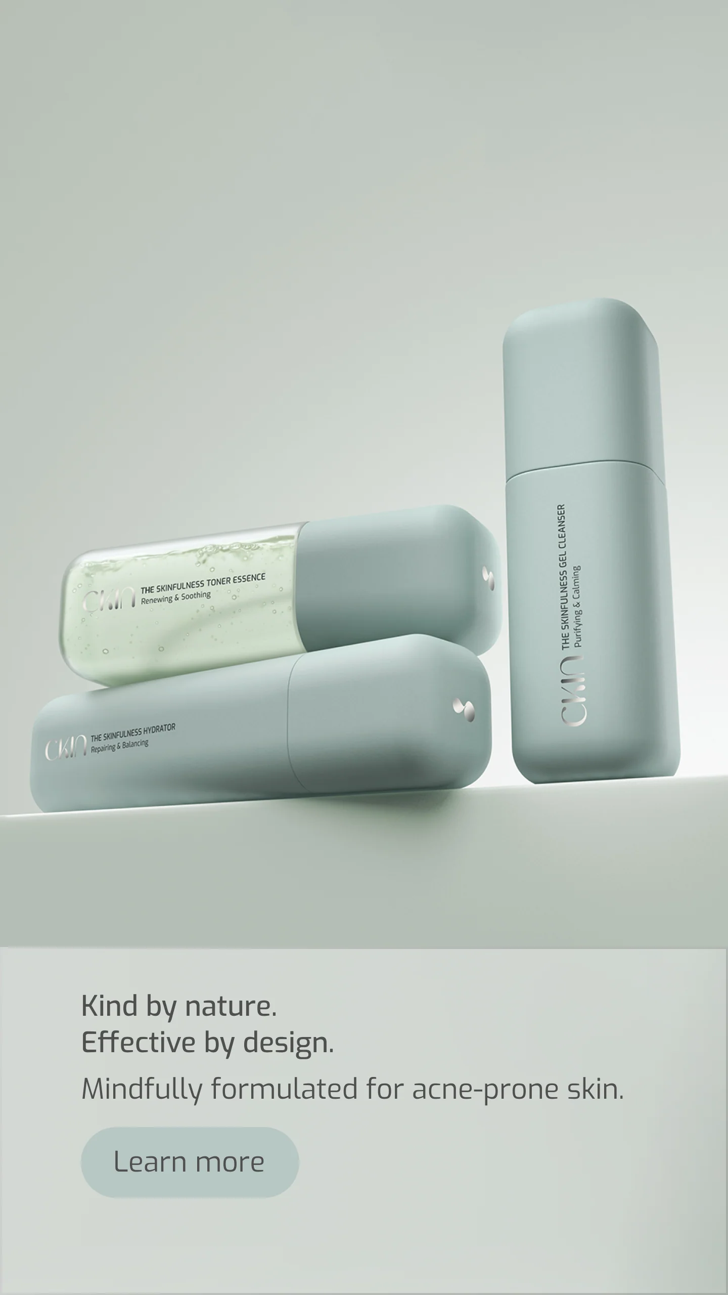 Meet the Skinfulness trio—cleanser, toner, and hydrator—designed to strengthen the skin barrier and soothe acne-prone skin.